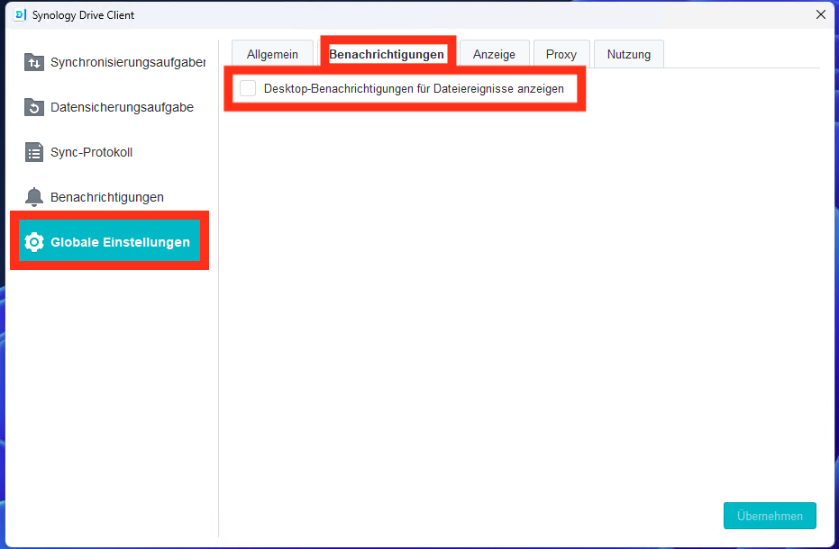Führen Sie diesen Schritt erst durch, wenn Sie entweder das Netzlaufwerk verbunden haben, oder optional den Synology Drive Client installiert haben
